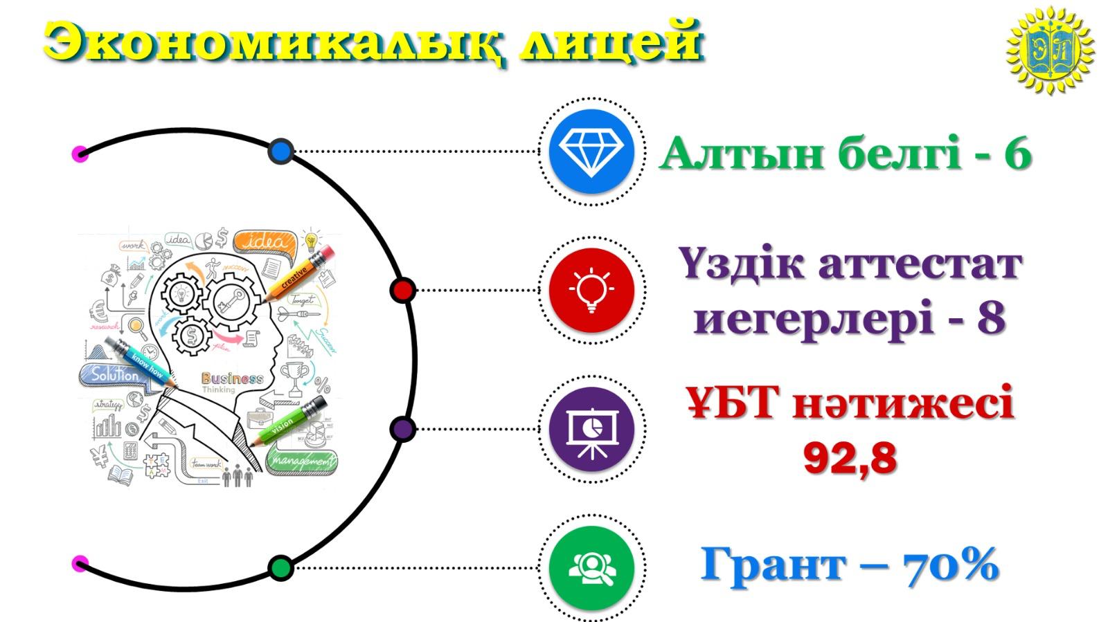 2025 жыл “Экономикалық лицей” үшін табысты жыл болды.Лицейде оқу-тәрбие процесі бекітілген жоспарға сәйкес жүргізіледі. Білім алушылар мемлекеттік білім беру стандартына сай білім алып, оқуда жоғары жетістіктерге қол жеткізуде.