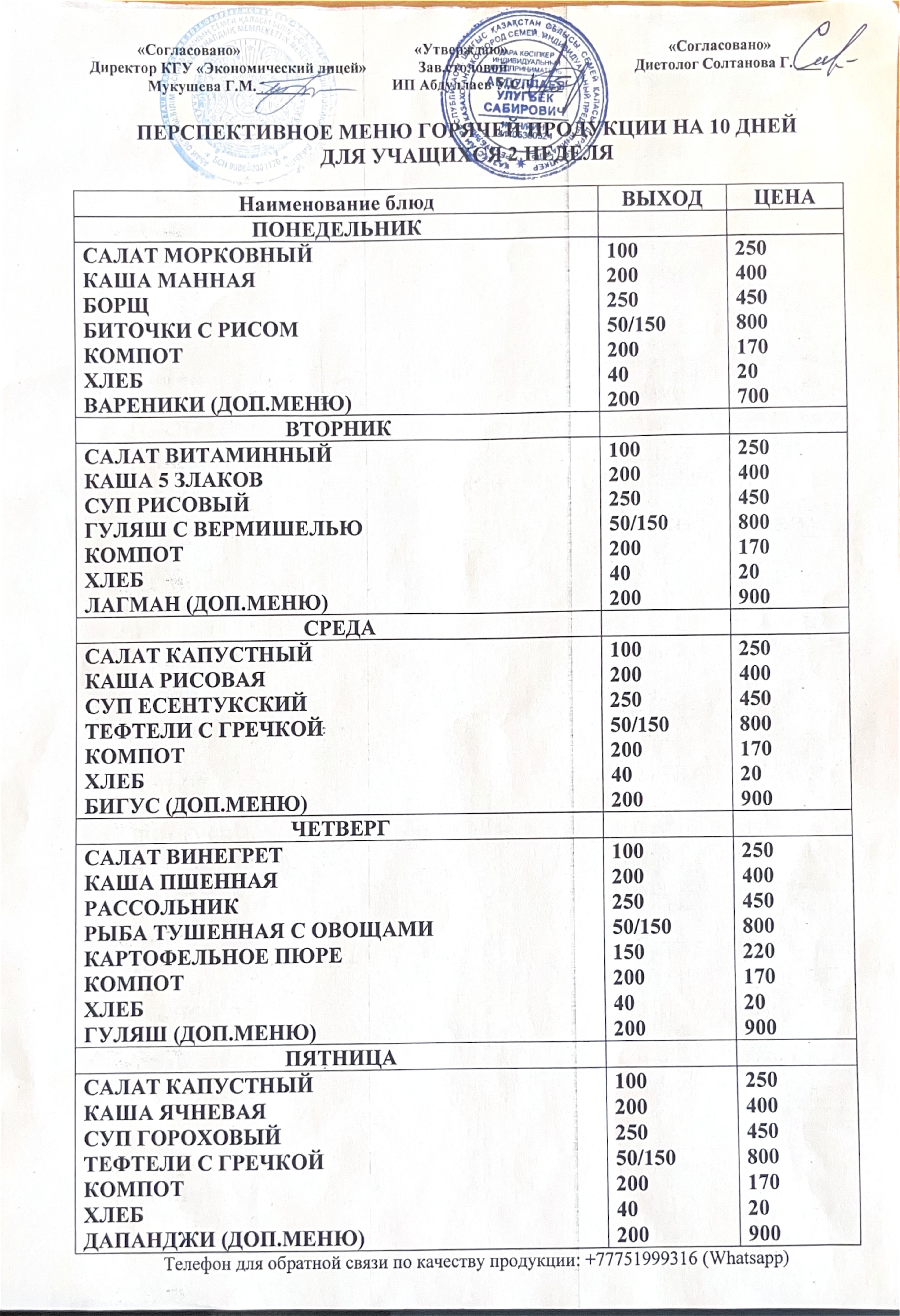 Перспективное меню 2 неделя » КГУ "Экономический лицей"